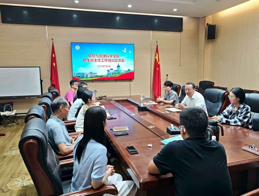 于龙子湖校区教学楼A座405会议室召开2025级新生班主任工作会议。学院院长陈振、党委副书记蔡镔出席会议,2025级辅导员李艳飞及学院2025及新生班主任参加会议。