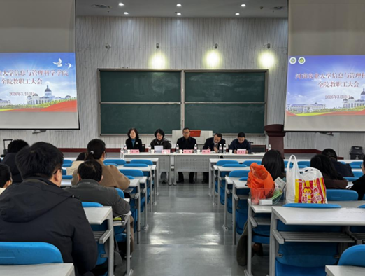 在龙子湖校区繁塔楼大教室二召开全院教职工大会,学院领导班子及全体教职工参加会议,会议由院党委书记田琨主持。