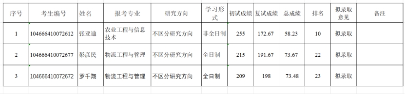 已公示的2026年硕士研究生招生一志愿考生复试结果依次补录,物流工程与管理(全日制)第21名已被其他高校拟录取自愿放弃,现补录第22和23名,具体情况公示如下: